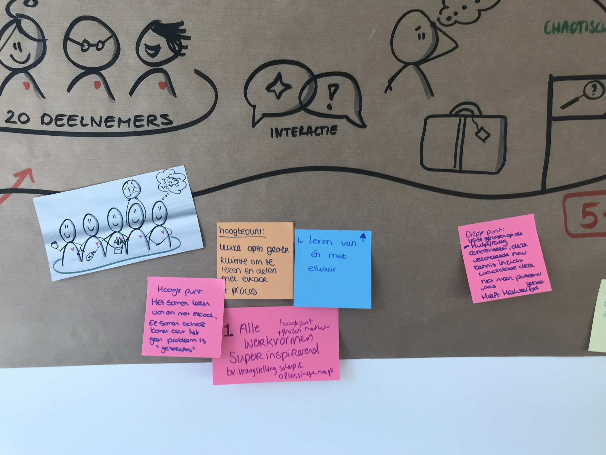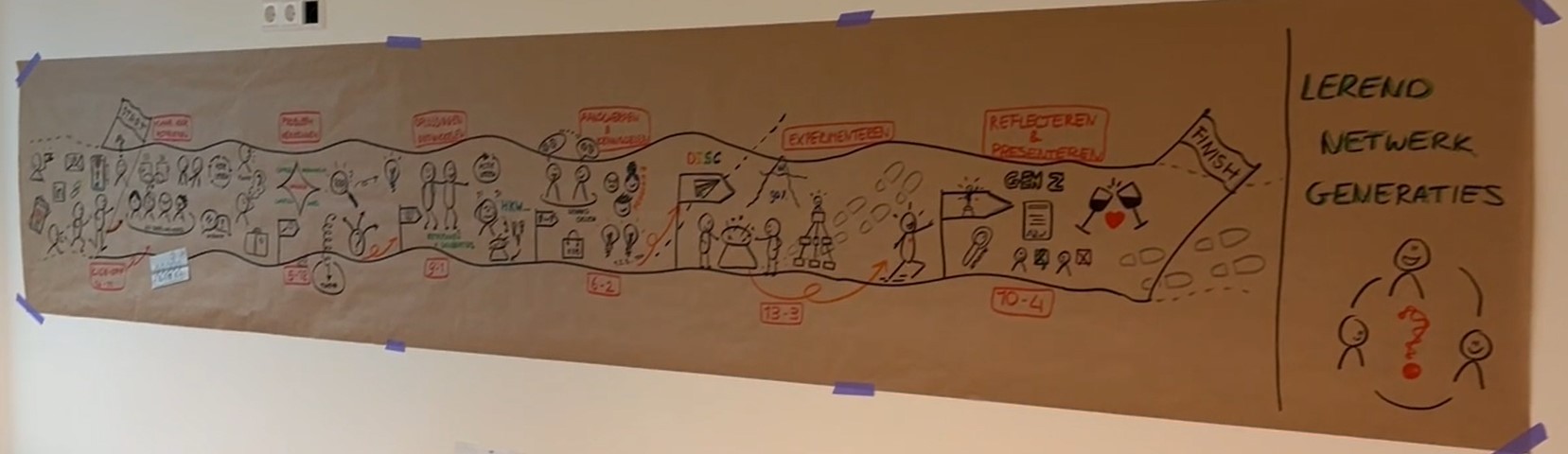De sessie stond in het teken van de actieleerfase ‘Reflecteren & Presenteren’. Via de tijdlijnmethode blikten deelnemers terug op hun persoonlijke en gezamenlijke leerproces. Sleutelmomenten, successen en leerervaringen werden gedeeld, wat resulteerde in een tastbaar overzicht van groei en impact. Eén krachtige metafoor over generaties sprong eruit: 🍪 “De koekjes smaken allemaal anders, maar uiteindelijk zijn het allemaal koekjes!”