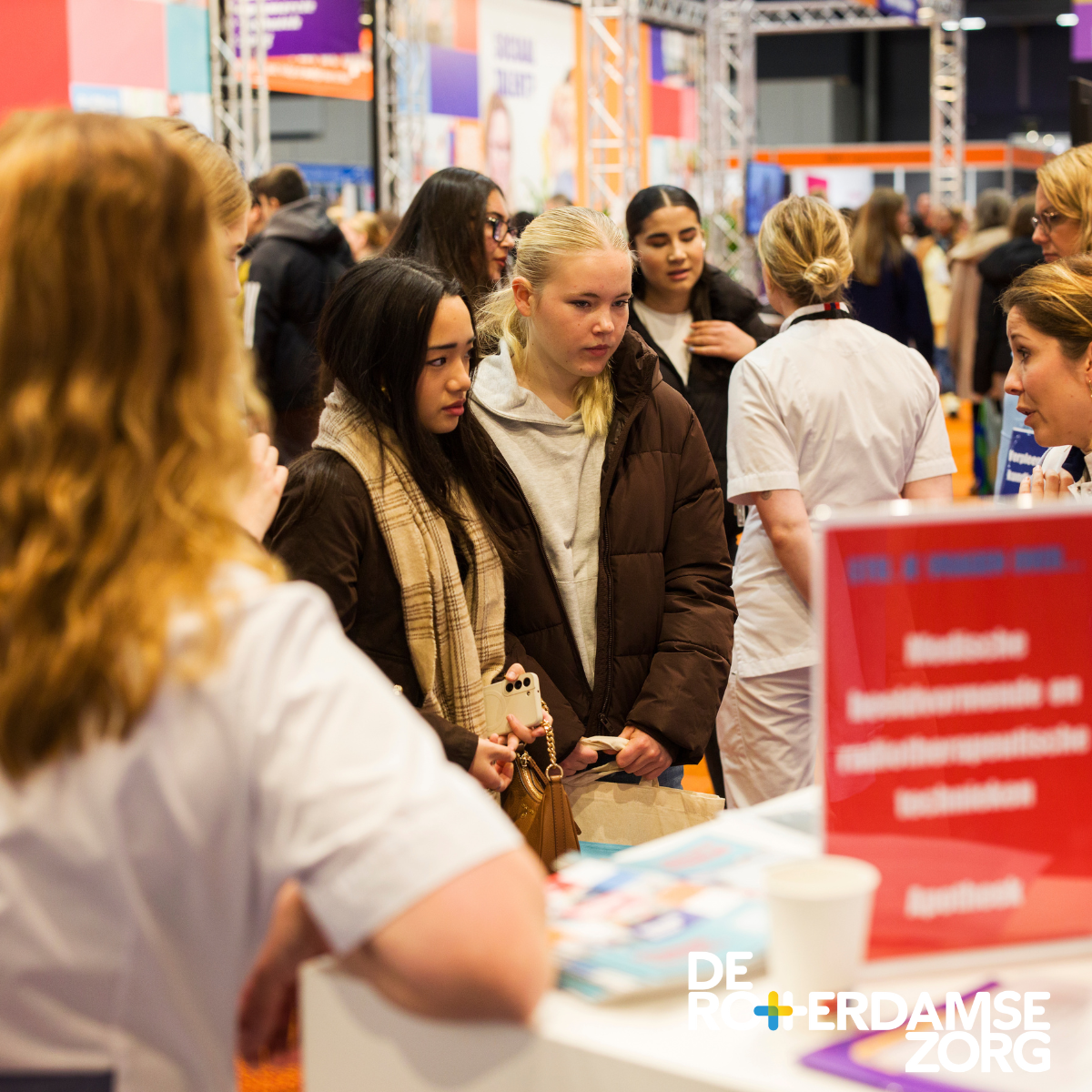 De Studiekeuzebeurs West 2025 trok dit jaar in totaal 16.598 unieke bezoekers. Op het gezamenlijke zorg- en welzijnsplein maakten jongeren op vrijdag 12 en zaterdag 13 december in Ahoy Rotterdam kennis met de veelzijdigheid van werken en leren in de sector. In samenwerking met 22 zorg- en onderwijsorganisaties werden zij geïnformeerd en enthousiast gemaakt over de vele mogelijkheden binnen zorg en welzijn.